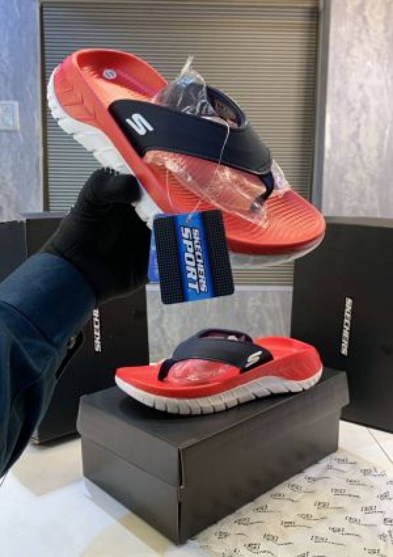 SKECHERS-MENS-GO-RECOVER-229018-BBK-SLIP-ON-SANDALS-Redblue